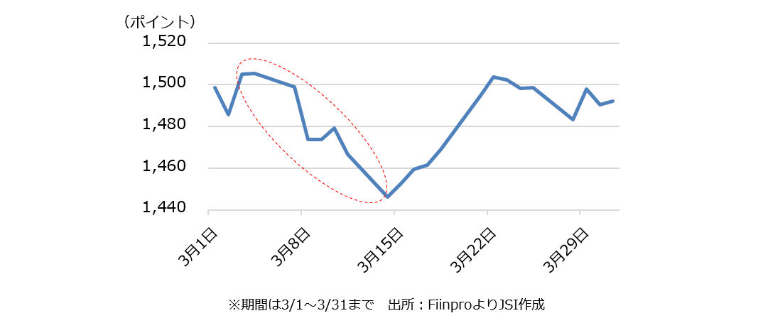 3月のVN指数はボラタイルな値動きとなりました。ウクライナ問題による商品価格の高騰は株式市場にも影響しました。しかし3月末から開催される年次株主総会で力強い事業計画への期待から再び上昇に転じました。また月末にはFLC会長逮捕により、FLC関連銘柄や小型株の下げが目立ちました。