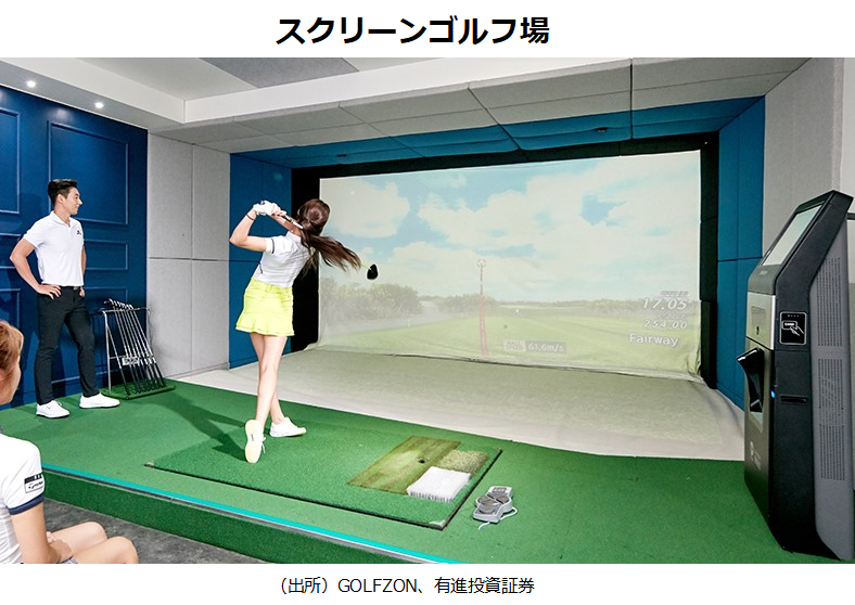スクリーンゴルフは、利用料金の高いフィールドゴルフを補完・代替するビジネスになっています。スクリーンゴルフのシーズンは気候が厳しい夏と冬で、さらに、スクリーンゴルフ場で練習してからフィールドに出るケースも一般的になりました。近年はスクリーンゴルフのオンライン大会も開かれるくらいになっています。
