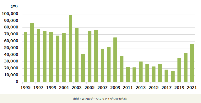 調査機関の予測によると5~7年のスパンで考えると、「城中村」再開発における潜在的投資額は年平均でおよそ5,000億元(約10兆円)で、新築住宅市場への押上げ効果はトータルで5兆元(約100兆円)以上になると試算されます。また、それを合わせた「3大プロジェクト」の潜在的投資額は年平均で約1兆元前後(約20兆円)になると推定されます。これは今年の中国の不動産投資額(約12兆元)の8%程度に過ぎず、2015~2018年の再開発ブームには程遠いです。つまり、「3大プロジェクト」は不動産市場を下支えするプラス効果をもたらすものの、中国不動産市況全体の方向性を覆すまでには至らないと思われます。