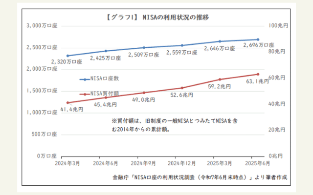 6月末時点でのNISAは2,696万口座、2025年の枠での買付額は10.5兆円