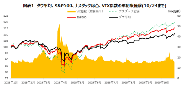 ※ダウ平均、S&P500、ナスダック総合は2024年末を100として指数化