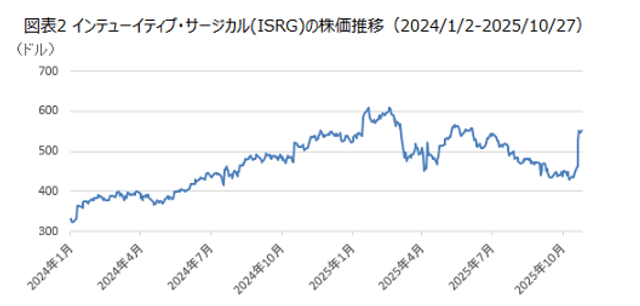「ダ・ビンチ・サージカル・システム」などのロボット手術設備メーカー米インテュイティブ・サージカル(ISRG)が10月21日引け後に発表した2025年第3四半期(7-9月)決算は、売上高が前年同期比22.9%増の25億500万ドルとなり市場予想の24億400万ドルを上回りました。