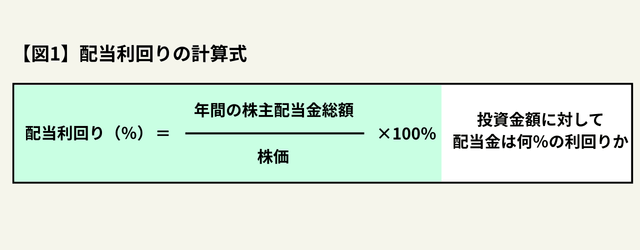 配当利回りとは、「投資金額に対して、どれだけの配当金が受け取れるか」を示した指標です。配当利回りの計算式は【図1】の通りです。