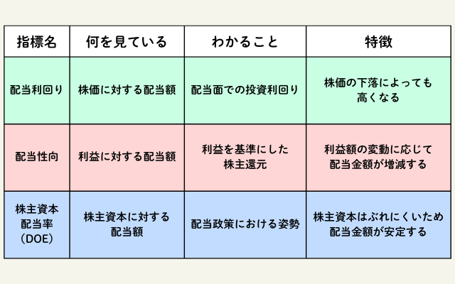 配当利回り、配当性向、DOEの違い