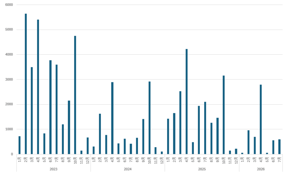 2026年の値上げ品目数(1~7月までの累計)を見ると、5729品目となりました。年間の平均値上げ率は15%に達しています。値上げ品目予定が1万品目を超えていた前年同時期と比べると、5割減のペースとなっています。
