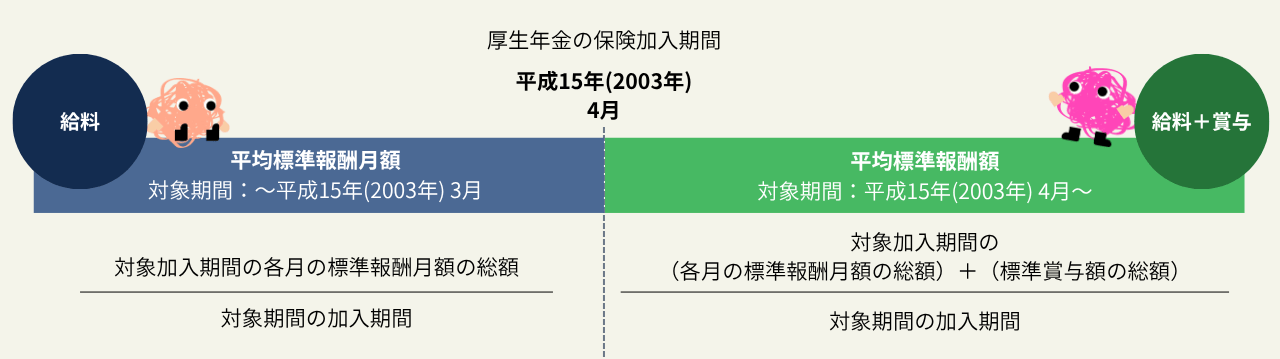 平成15年4月以降の加入期間において、計算の基礎となる各月の標準報酬月額と標準賞与額の総額を、平成15年4月以降の加入期間で割って得た額