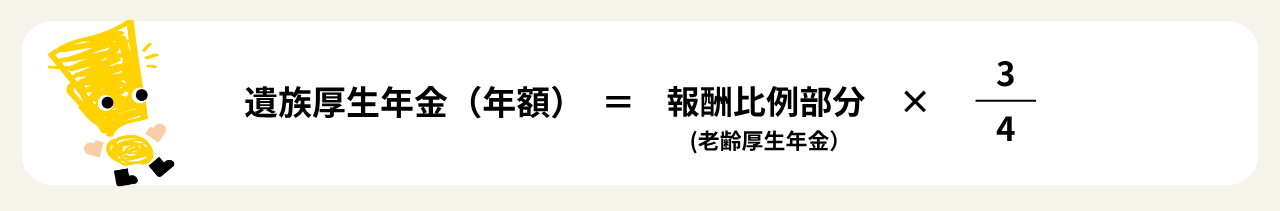 遺族厚生年金は亡くなられた方の老齢厚生年金額の3/4が支給されるのが基本です。