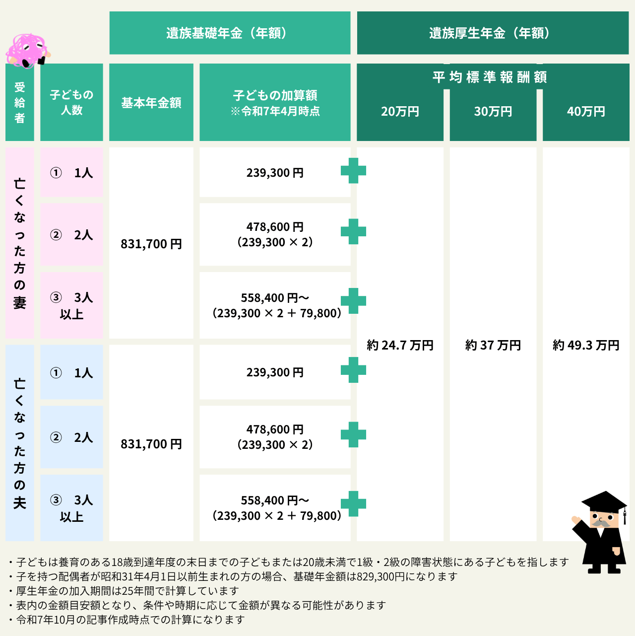 早見表で見る標準報酬月額別、遺族厚生年金の受給額目安