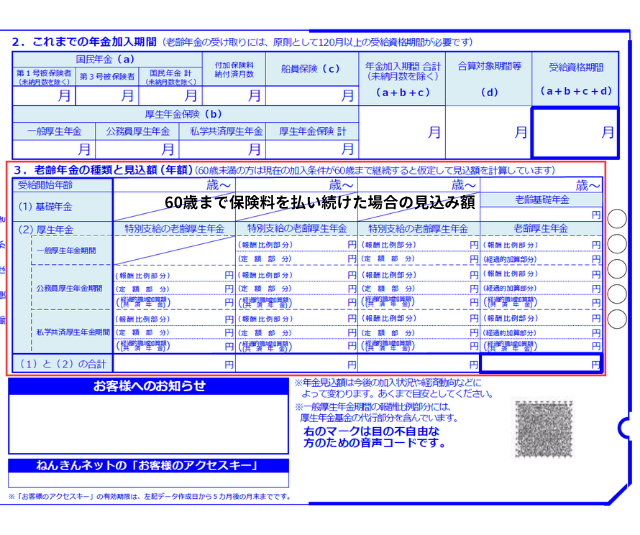 ねんきん定期便には、老後設計に関わる重要な項目が多数含まれています。