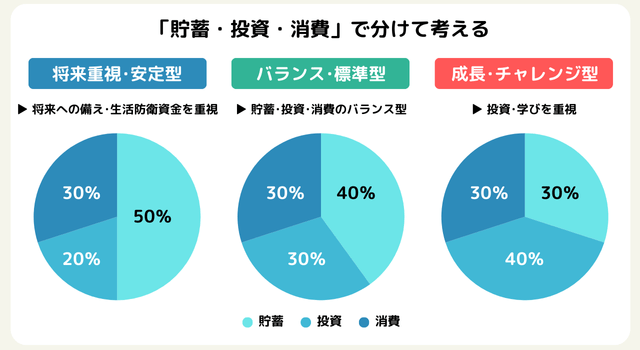 ライフステージ別に見ると、独身で固定費が低い人は、貯蓄を確保しつつ投資や自己投資に多めに振り分けることで、将来の資産形成やキャリアアップを狙いやすくなります。共働き世帯では貯蓄・投資・消費をバランスよく配分し、将来と今の満足を両立させる考え方が向いています。また、子育て世帯や支出予定が多い家庭では、貯蓄を厚めに確保しながら、無理のない範囲で消費や投資を行うことが安心につながります。