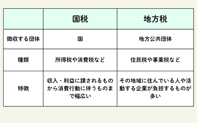 まず、大きく分けられる課税主体である国税と地方税の特徴を確認しましょう。
